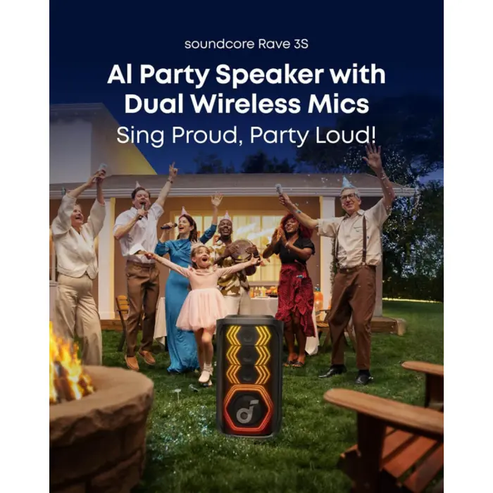 Anker Soundcore Rave 3S AI Karaoke Bluetooth prijenosni zvučnik, 200W, crni (A31A3012), 55711