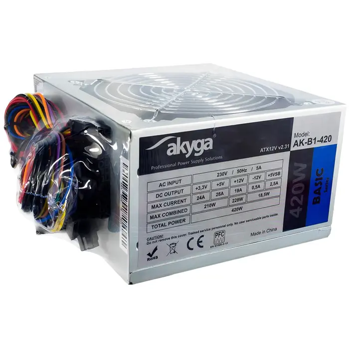 ATX power supply 420W Akyga AK-B1-420 P4 3x SATA 2x Molex PPFC FAN 12cm, AK-B1-420