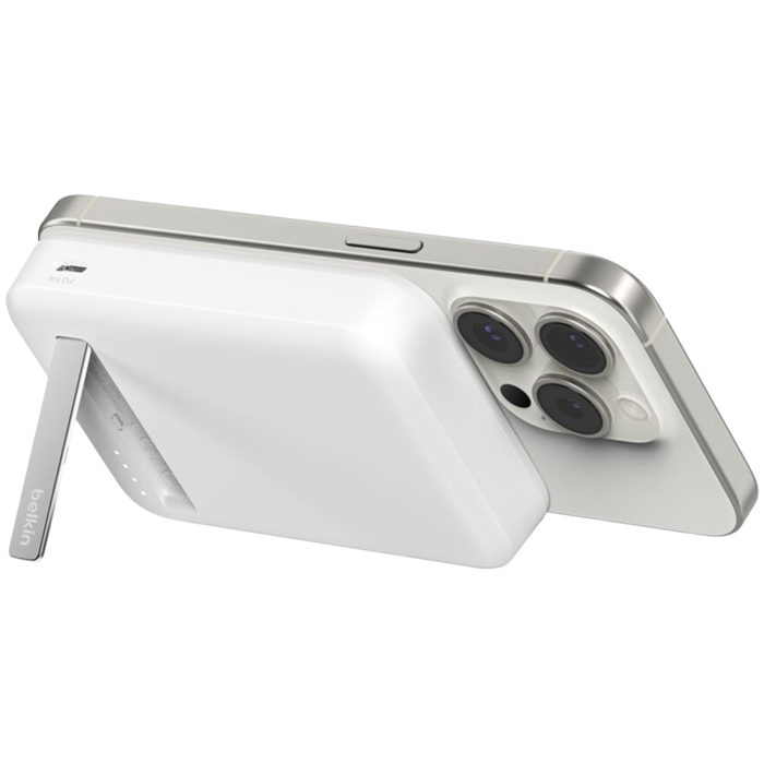 BELKIN 8k Qi2 MagSafe Compatible Powerbank with Kickstand, White, BPD007BTWH