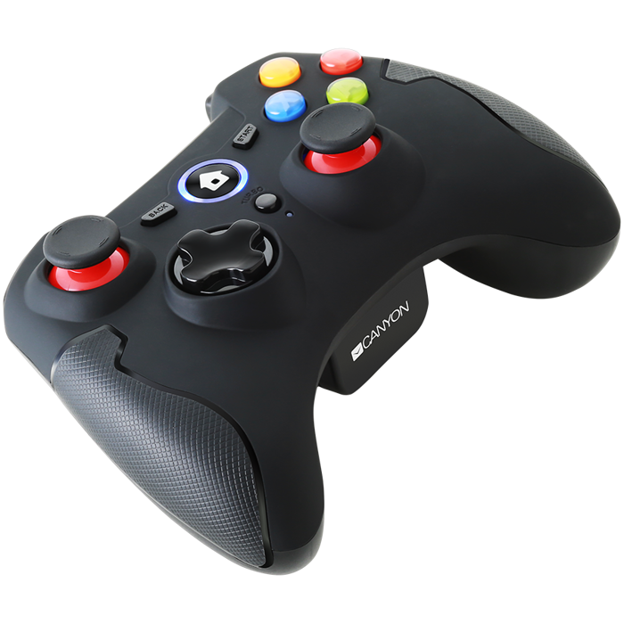 CANYON GP-W6, 2.4G Wireless Controller with Dual Motor, Rubber coating, 2PCS AA Alkaline battery ,support PC X-input mode/D-input mode, PS3, Android/nano size dongle,black