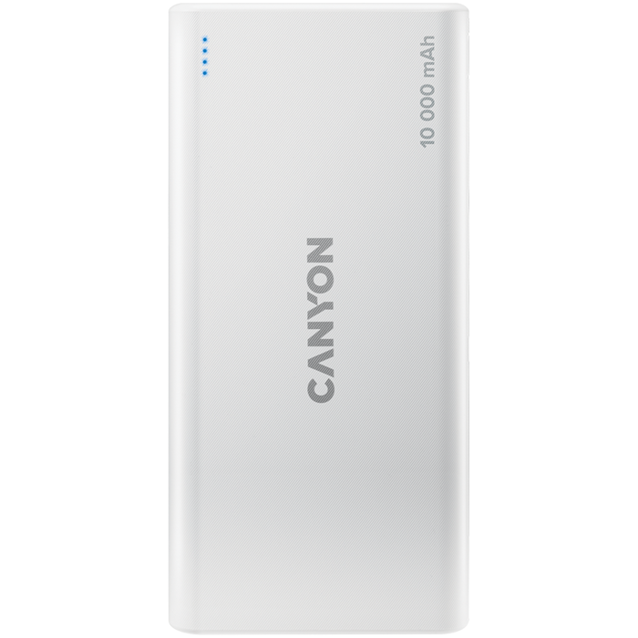 CANYON PB-108 Power bank 10000mAh Li-poly battery, Input 5V/2A, Output 5V/2.1A(Max), 140*68*16mm, 0.230Kg, White