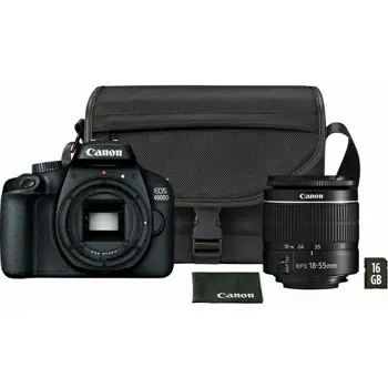 Model: EOS 2000D Senzor: 22,3 mm x 14,9 mm CMOS 24,7 megapiksela Objektiv: EF-S 18-55mm IS + EF 75-300mm Zaslon: 7,5 cm (3 inča) TFT LCD, pribl. 920 000 točaka Kut gledanja (vodoravno/okomito) Pribl. 170° Fokus: Način rada s prikazom uživo: One Shot