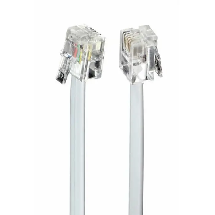 Description - 4-wire flat telephone cable with 6-pole 4-contact RJ12 (Western) plug - Colour: White - All pins connected 1: 1 technical Data - Area of application: Internal/External - Colour (Cable): grey - Cable composition: 4 wires, telephone fla