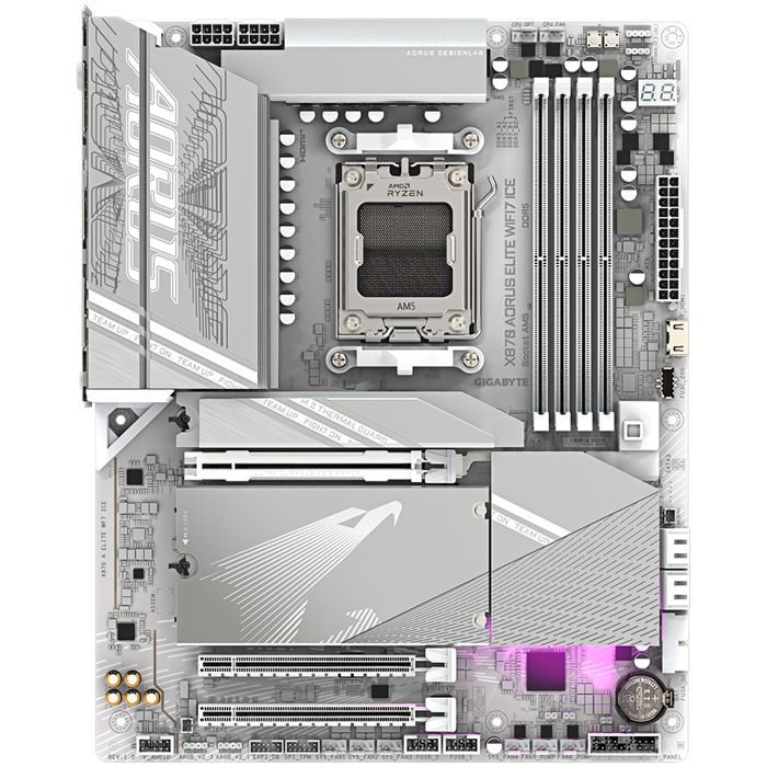 GIGABYTE MB X870 AORUS ELITE WIFI7 ICE (AM5, 4x DDR5 256GB, 1x PCI-E 5.0 x16x16, 1x PCI-E 4.0 x16x4, 1x PCI-E 3.0 x16x2, 3x M.2 PCIe 5.0 & 1x M.2 PCIe 4.0, 4x SATA, 2x USB4 Type-C. 6x USB 3.2, 4x USB