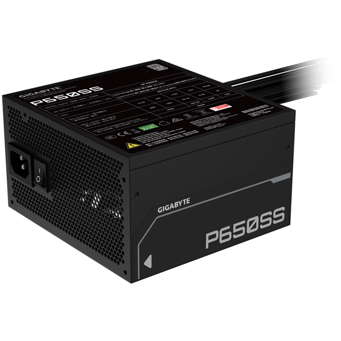 GIGABYTE PSU GP-P650SS, 650W 80Plus Silver, 230V EU, ATX 3.0 (3.1), 120mm Fluid Dynamic Bearing fan, Active PFC, Flat cable, +12v Rail, OVP/OPP/SCP/UVP/OCP/OTP, Black, GP-P650SS