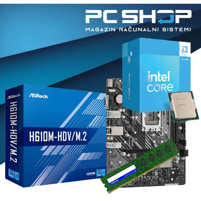 MagazinRS Radna Stanica racunalo CPU: Intel Raptor Lake i5 14400 2.5Ghz / 4.7GHz (Boost) Soc.1700, 10C/16T Maticna ploca: H610M Soc.1700 Graficka kartica: Intel ® Graphics UHD 730 Memorija: 16GB DDR4 Tvrdi disk1: HDD 1TB Solid State disk2: S