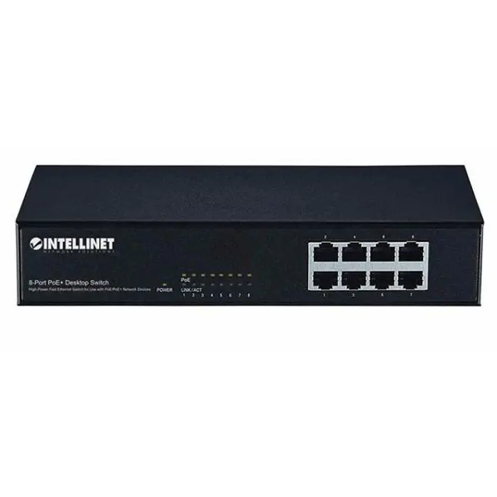 INTellinet Network PoE+ Switch, 8-Port, Desktop,Fast Etherne