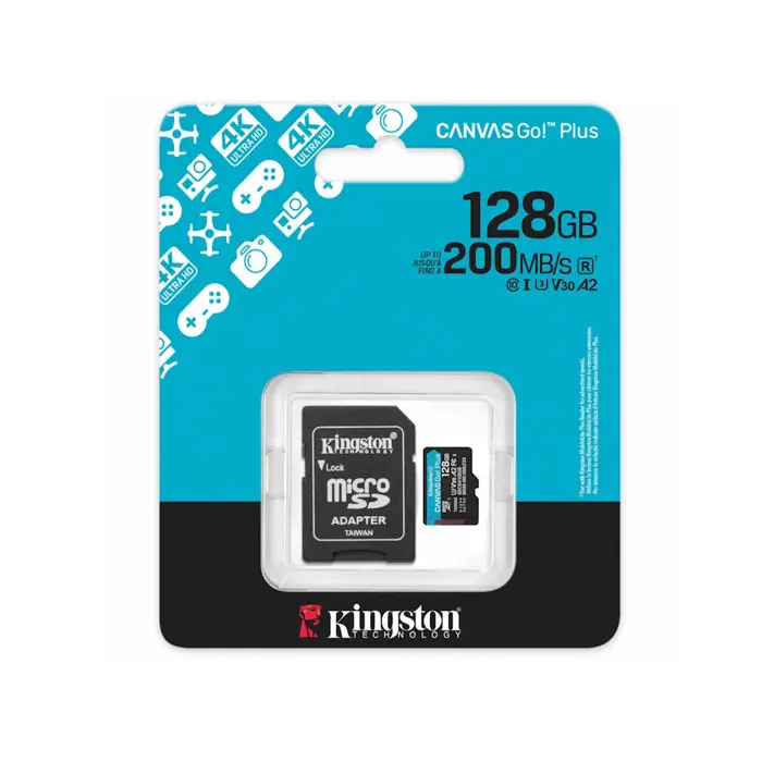 Kingston 128GB microSDXC Canvas Go Plus Gen4 + ADP200MB/s A2 U3 V30 Card + Adapter