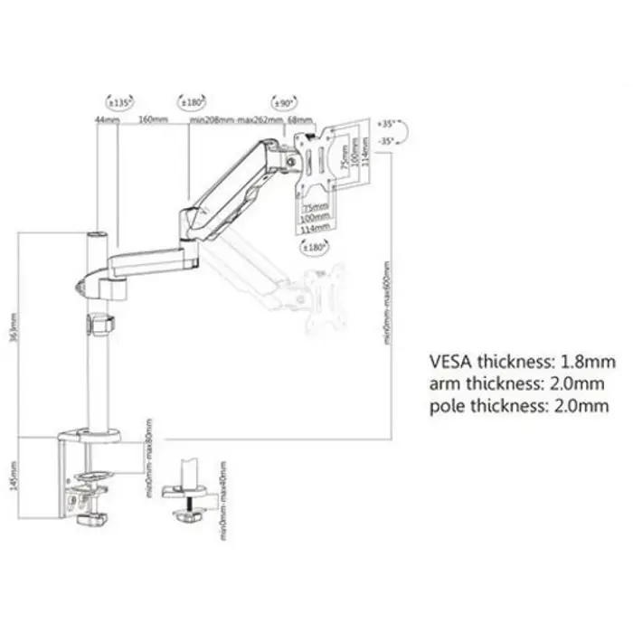 - Weight capacity: up to 35 kg - Screen Size: 81 cm up to 139 cm - Low profile - very small distance to wall 19mm - Material: Steel - VESA: 200×200, 300×300, 400×200, 400×400 mm