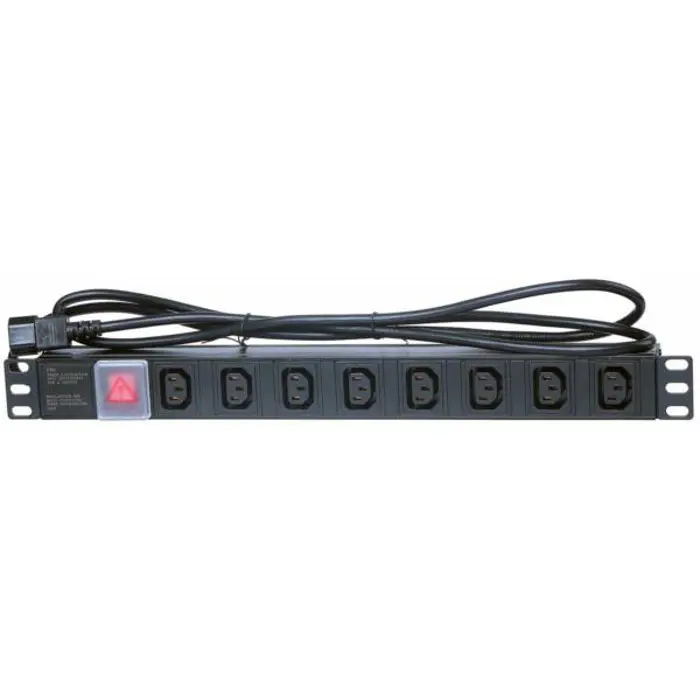 Masterlan 19" distribution panel 8xIEC, black, 2m, aluminium