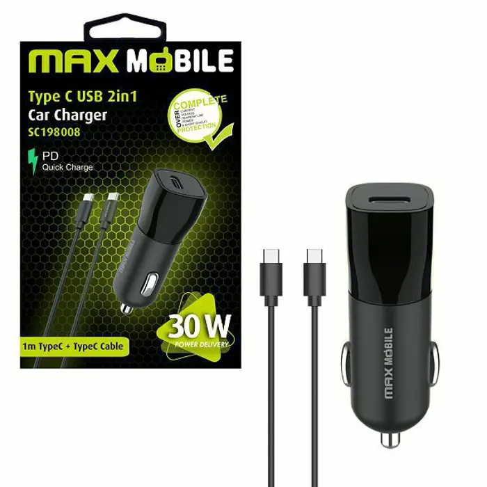 MAXMOBILE AUTO ADAPTER PD QC 3.0 TYPE C, SC-198008+Type C kabel, 30W