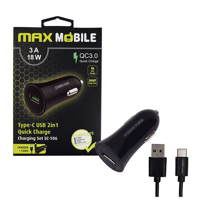 MAXMOBILE AUTO ADAPTER USB SC-106 QC 3.0,18W QUICK CHARGE 3A + TYPE C crni