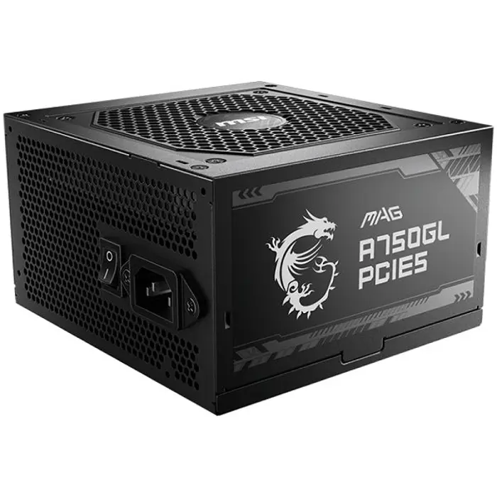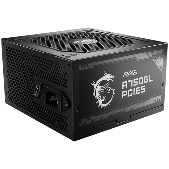 MSI MAG A750GL PCIE5, 750W, 80 Plus Gold, ATX Form Factor, 100~240 Vac Input Voltage, 47Hz ~ 63Hz Input Frequency, 120 mm Fan, 140 x 150 x 86mm, Active PFC, OCP, OVP, OPP, OTP, SCP, UVP, ATX, 2xEPS, 4