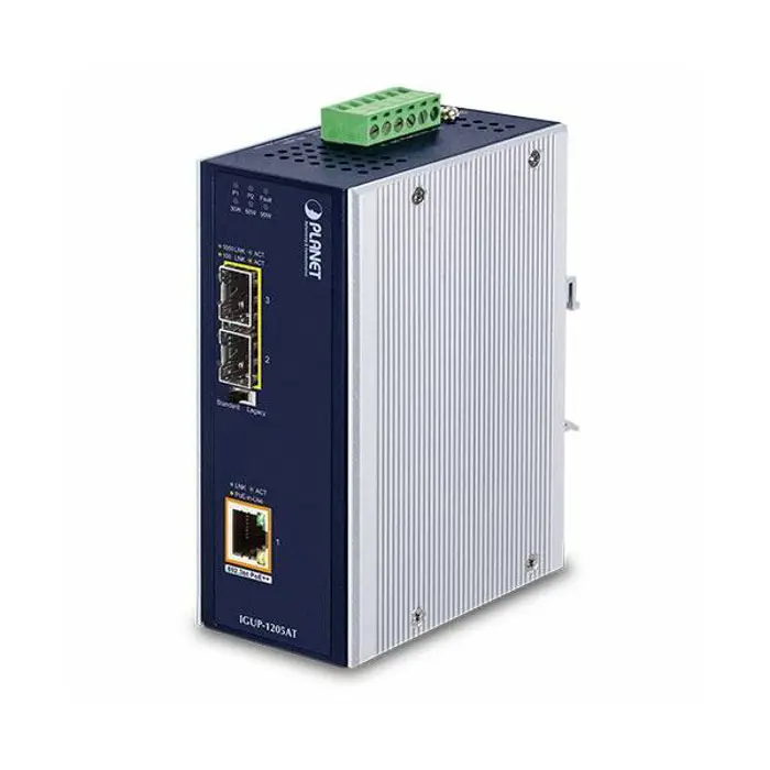 Planet Industrial 2-Port 100 1000X SFP to 1-Port GbE 802.3bt PoE Media Converter