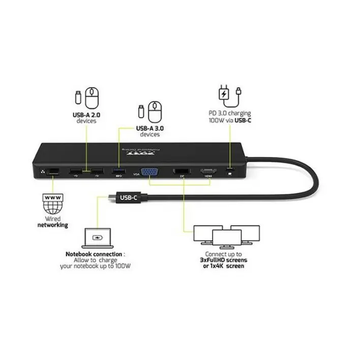 Port docking travel USB-C,1x4K ili 3XFHD, do 100W