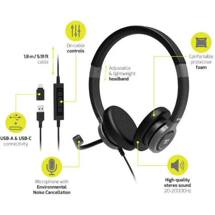 Port slušalice stereo USB-A/C+mikrofon, crne, 912001