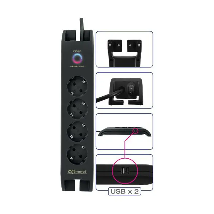 Prenaponska zaštita,4 utičnice, 2m, crna
