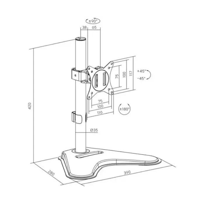 - Weight capacity: up to 35 kg - Screen Size: 81 cm up to 139 cm - Low profile - very small distance to wall 19mm - Material: Steel - VESA: 200×200, 300×300, 400×200, 400×400 mm