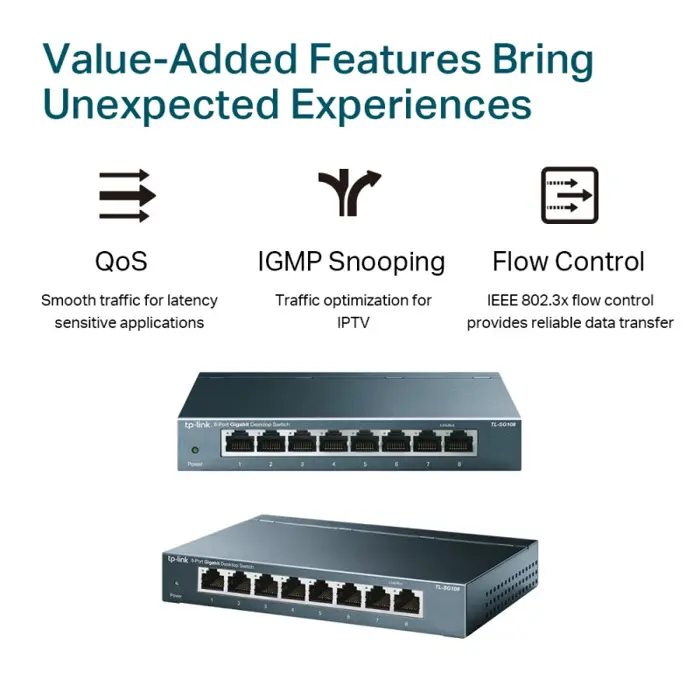TP-Link 8-port Gigabit Desktop preklopnik (Switch), 8×10/100/1000M RJ45 ports, metalno kućište, TL-SG108-LS