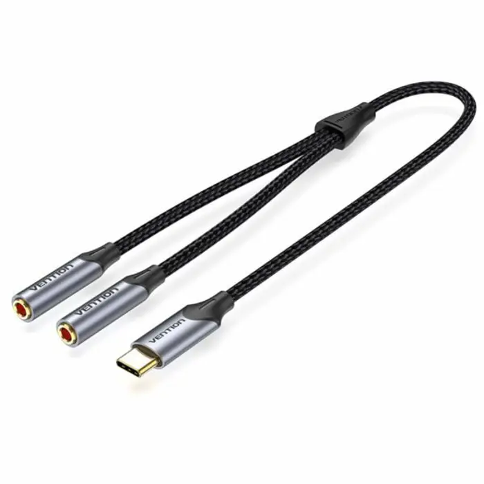Vention USB-C Male to Dual 3.5MM Jack Earphone Adapter 0.3M Gray