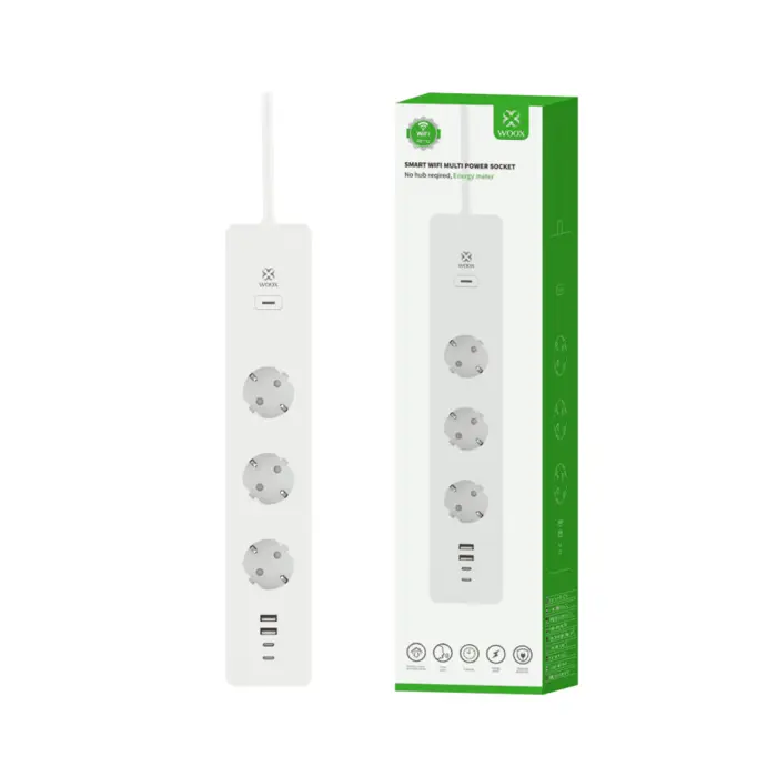 WOOX WiFi Smart multi-utičnica, 3×strujna utičnica, 2×USB-A, 2×USB-C punjač, WooxHome app, glasovna kontrola - Alexa & Google Assistant, 1.5m (R6132)